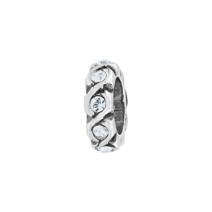 Love blooms forever with this floral heart charm and a pretty companion spacer on a lovely heart slide bracelet.