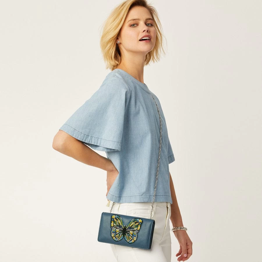 This many-pocketed wallet, with delicate handbeading and craftwork, is too pretty not to show off — that’s why we included a detachable chain strap.
