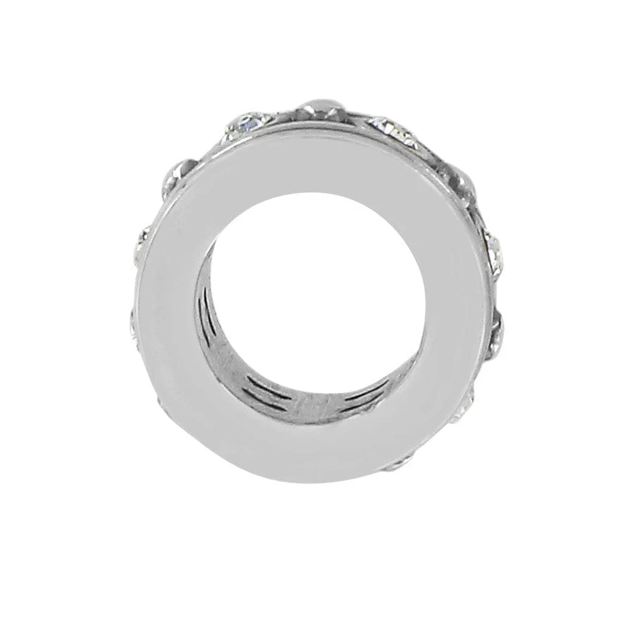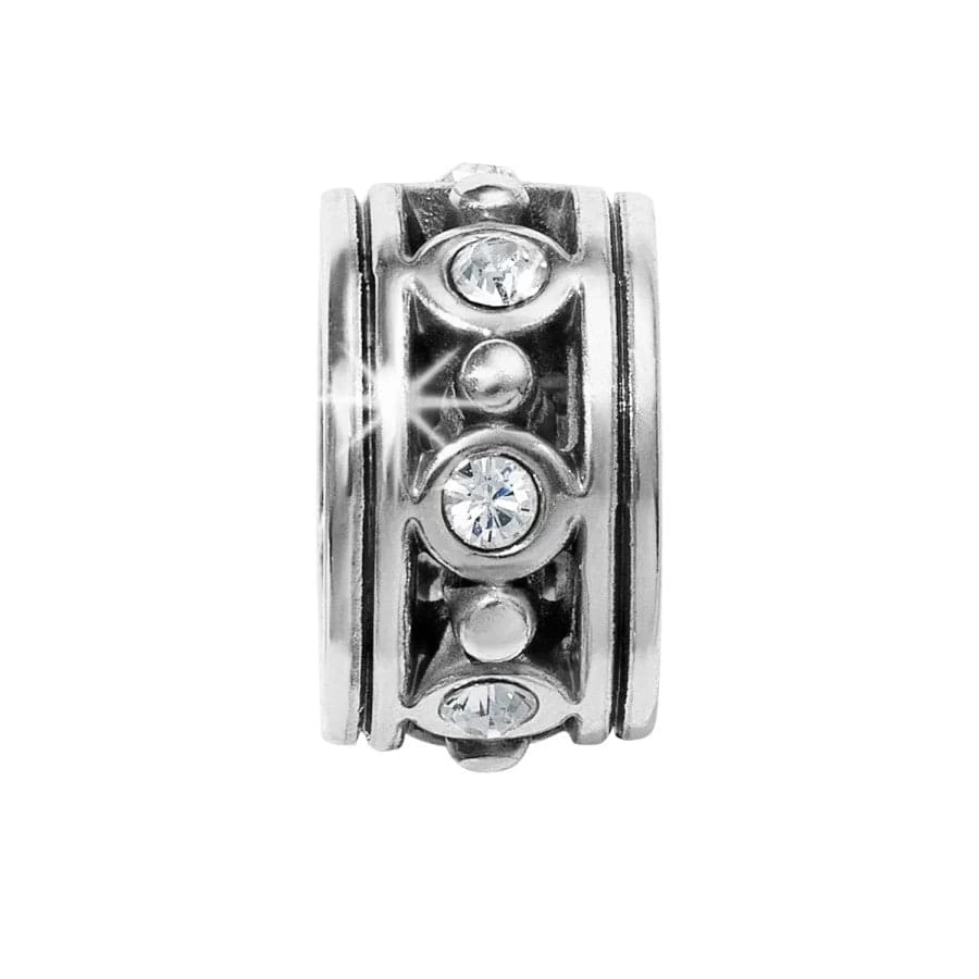 A simple geometric pattern of repeating fine quality crystals, intermixed with simple silver granulation, creates an elegant spacer.
