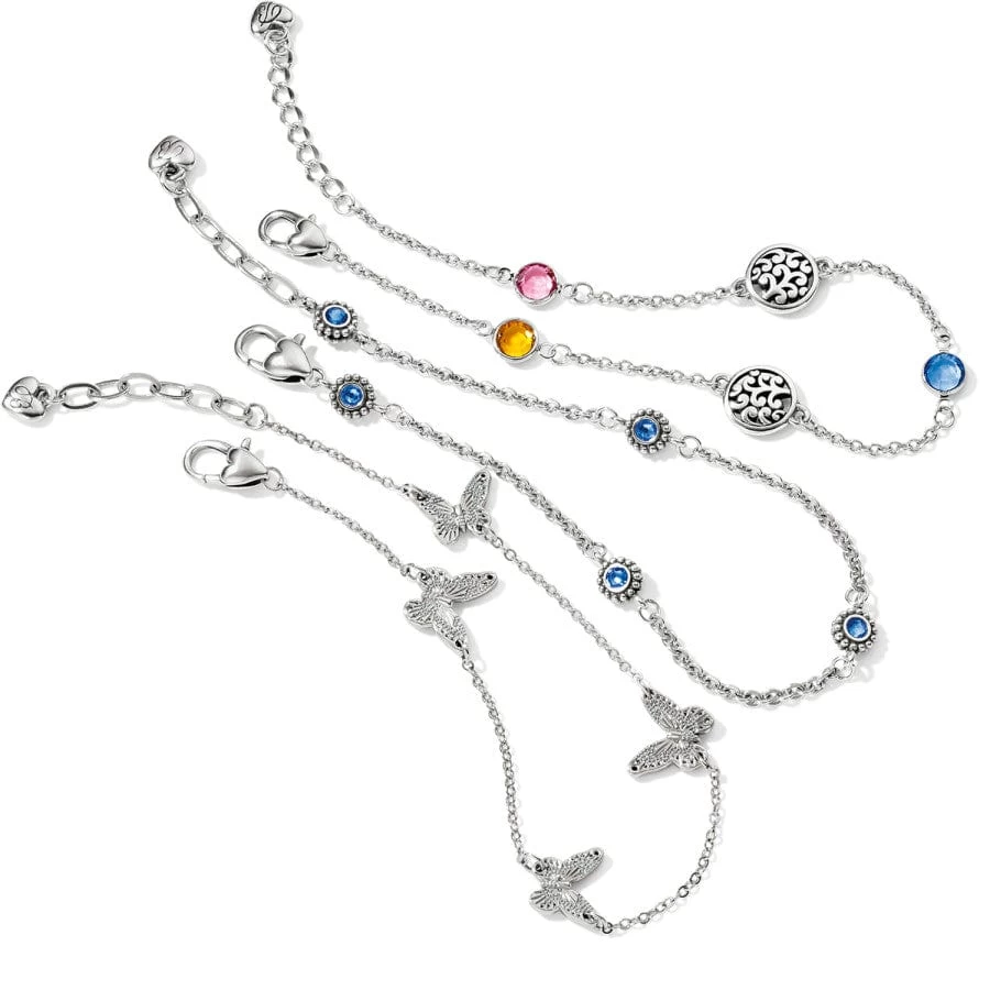 Candy-hued fine quality crystals add a pop of color around the ankle, a delicate touch for sunny-weather season.