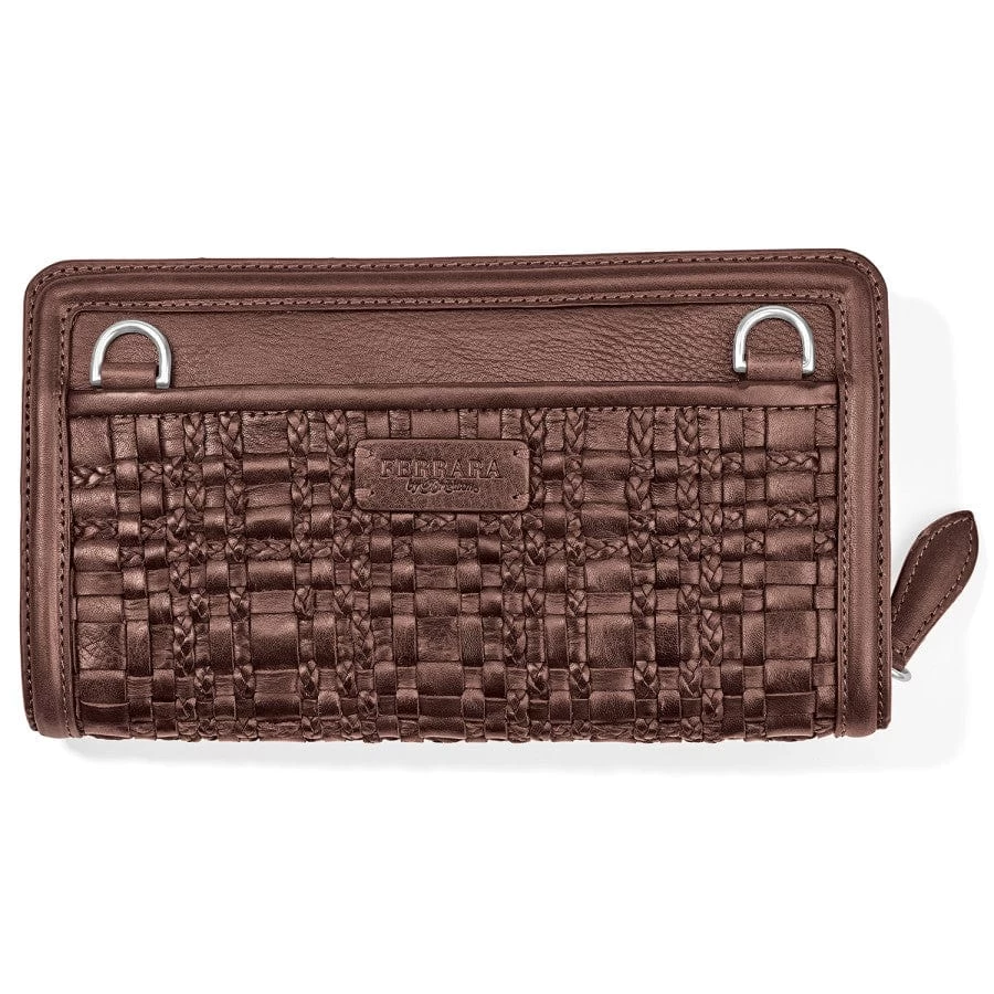 A close collaboration between designer Carmen Radulescu and a team of dedicated artisans in India has brought this ultimate artisan wallet to life. Ready to be loved and carried with pride for years to come, it features thinly braided strips intermingled with irregular strips that are hand-woven together. Leathers are hand stained to imbue them with richness and luminosity. The front braided panel showcases a hand-stitched Ferrara medallion.