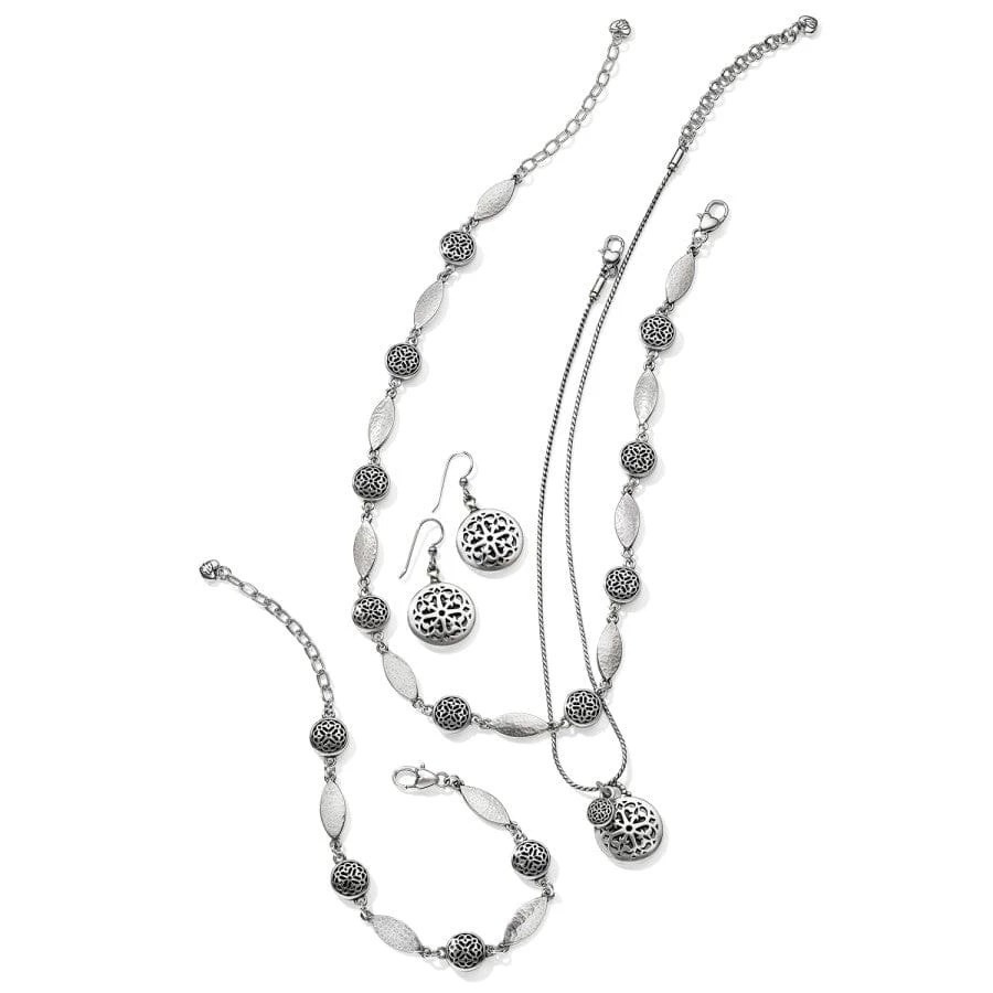 Shapely hammered silver beads alternate with rose window medallions inspired by 12th century European cathedrals on this modern collar necklace.