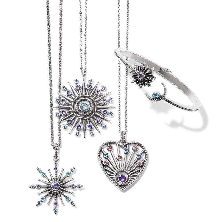 This snowflake and icicle-inspired open hinged bangle have a beauty to rival nature’s own creations.