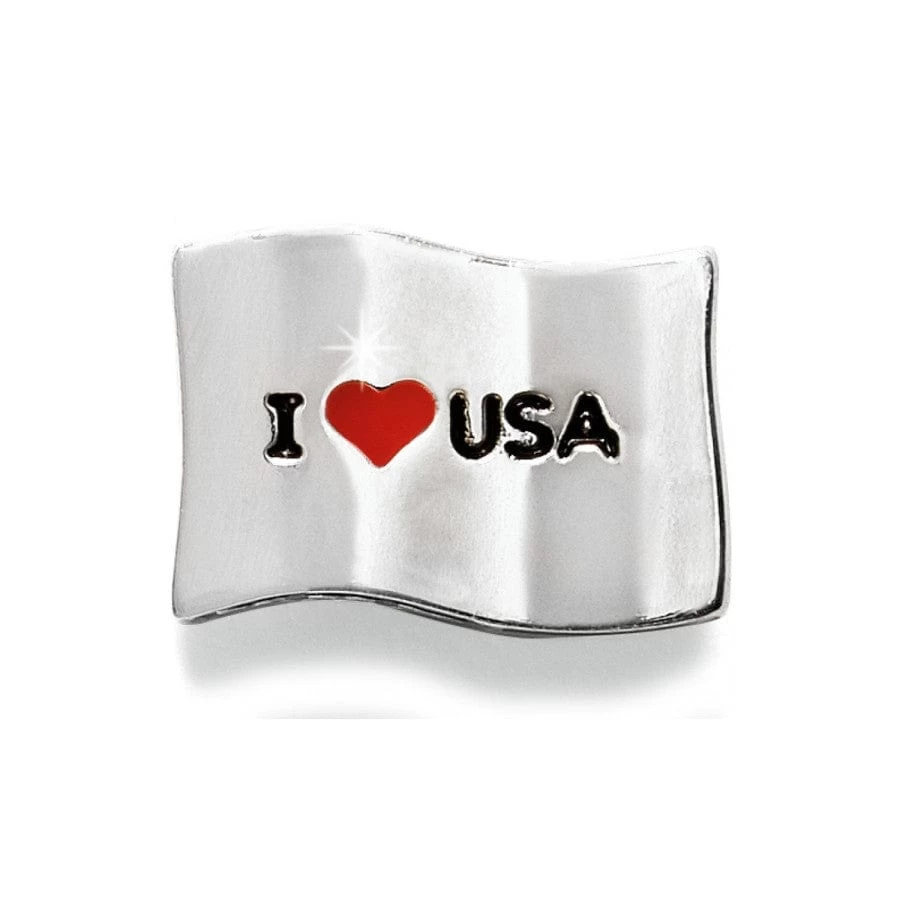 Your patriotic spirit shines when you wear this red, white, and blue hand-enameled flag. With hearts as stars, it’s perfect for Independence Day and beyond. Reads, “I love USA” on one side. Artisan details and impeccable craftsmanship are among the many hallmarks of our Brighton Treasures.