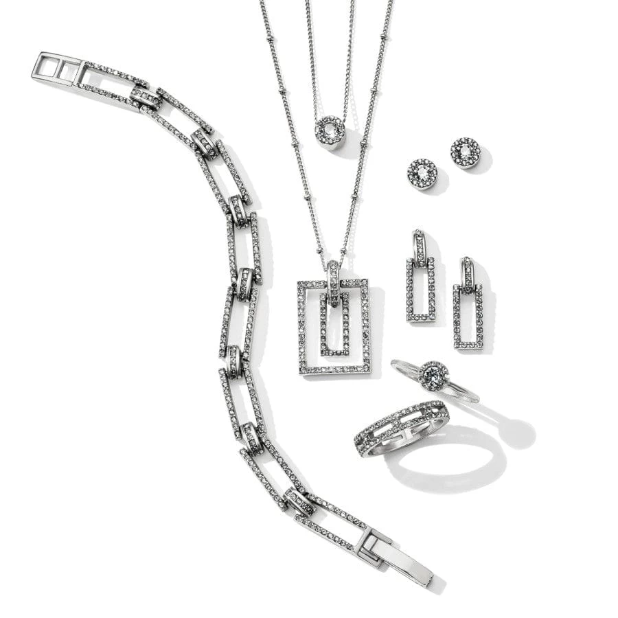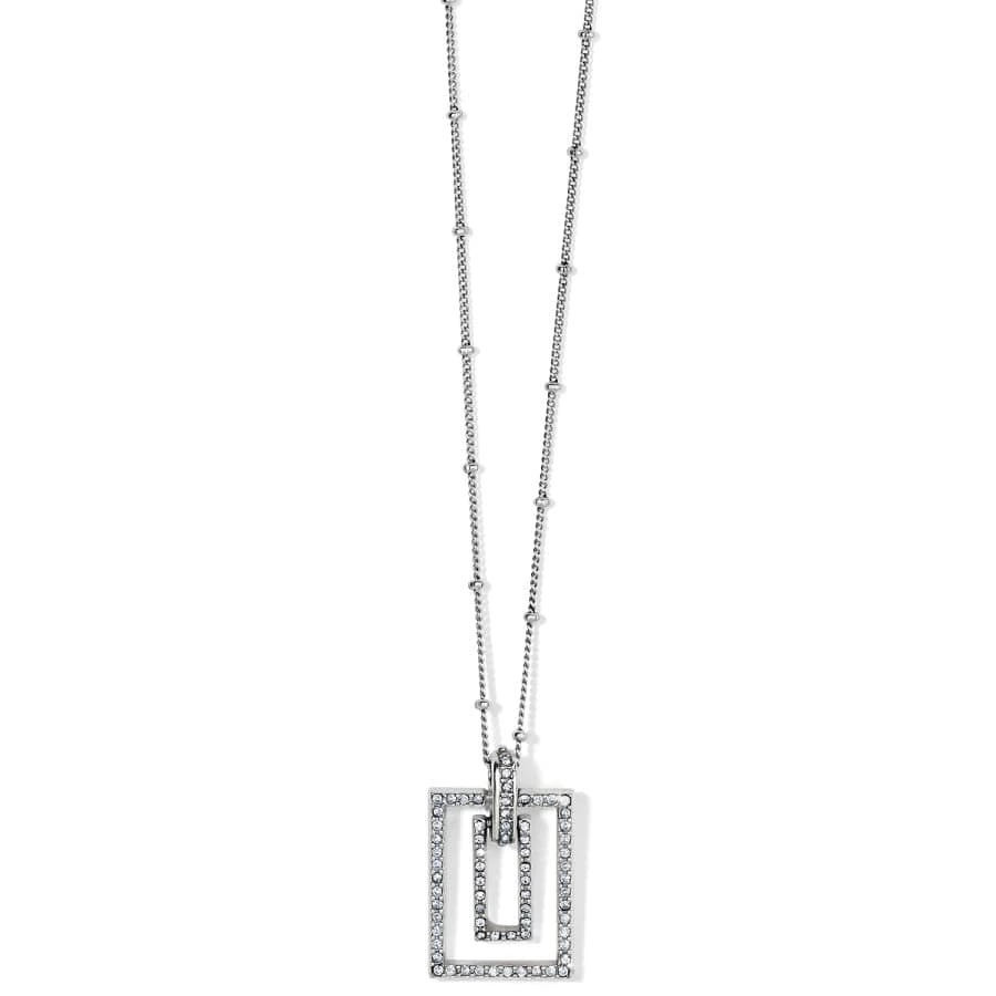 With a view like one sees while peering through a kaleidoscope, this necklace with sleek rectangular shapes and handset fine crystals takes a modern turn.