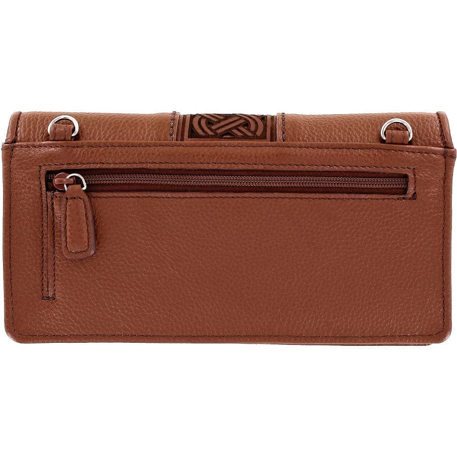 Our Celtic-inspired Interlok motif is flattened and stylized, reimagined on fine leather with a laser-etched design on this bourbon-hued wallet. It includes a detachable crossbody strap, so makes an excellent choice for those office-to-dinner dashes.