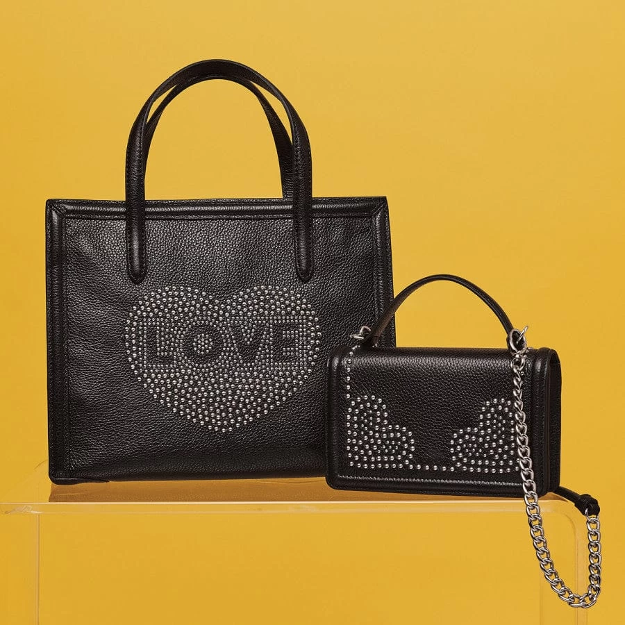 Spread the love with this classic medium size tote. It’s fun and stylish yet polished. It can be worn handheld or if you are out and about you can easily clip on the convertible crossbody strap. The back pocket is perfect for phone and keys.