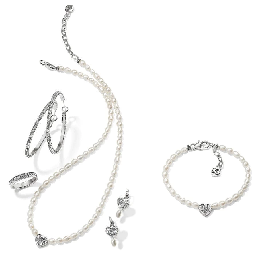 A petite heart hangs from a strand of delicate pearls for a look that is both feminine and modern.