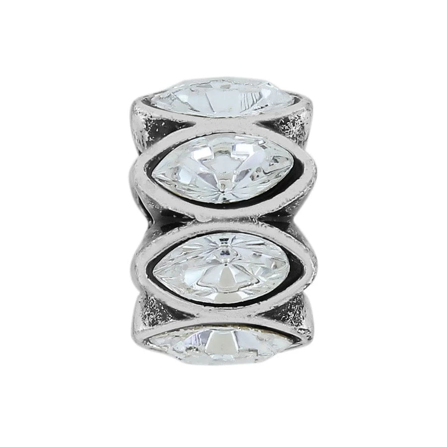 A holiday harlequin-inspired spacer bead combines red and green fine quality crystals in navette shapes.