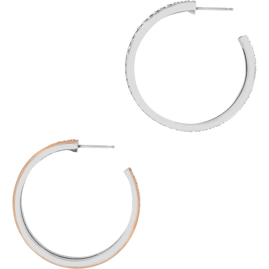 Simple hoops comprised of rose gold and pave fine quality crystal give a fine jewelry feel.
